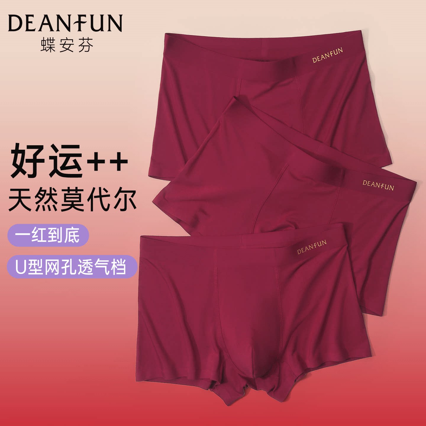 蝶安芬本命年男士内裤2026新款红色莫代尔抑菌桑蚕丝透气裆四角裤