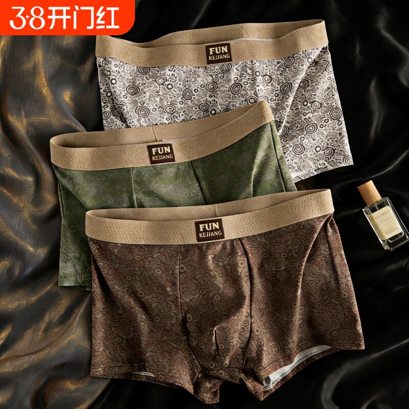 科将复古男士内裤民族印花纯棉平角个性透气四角舒适新款短裤潮流