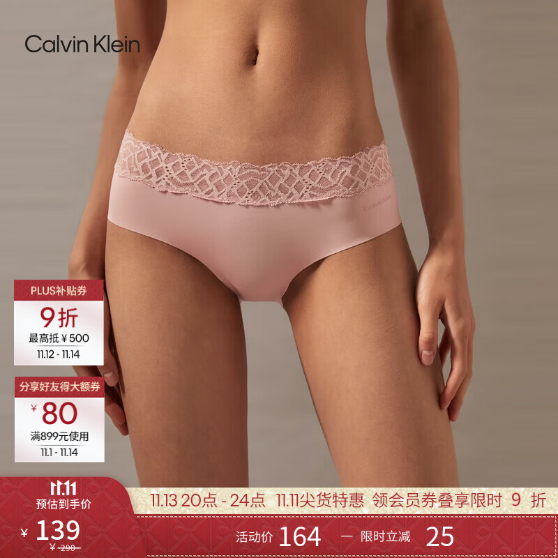 Calvin Klein内衣女士ck性感花边蕾丝顺滑半包臀防夹臀三角内裤女QF7942AD TQO-仙女粉 1条 S