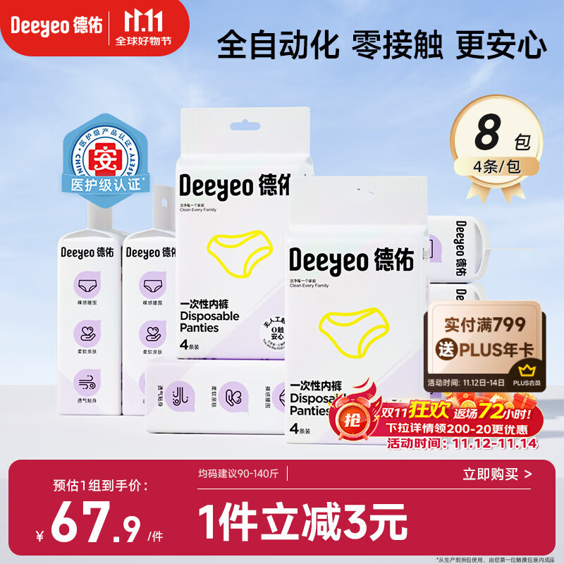 德佑一次性内裤女孕产妇出差生理期32条90-140斤无纺布【 安全灭菌】