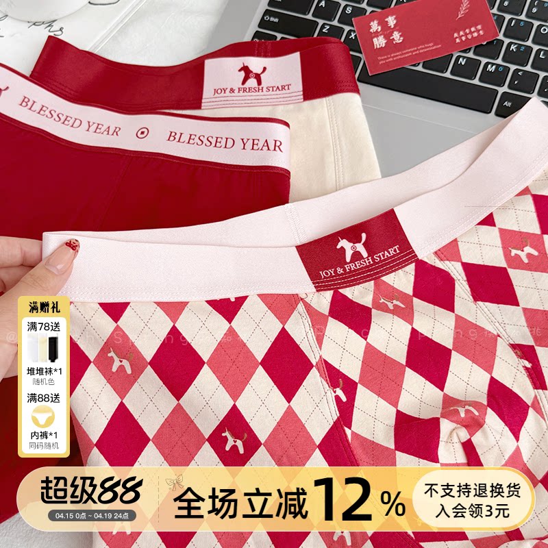 『以梦为马』天选本命红!A类棉男士平角内裤舒适纯棉10A抑菌四角