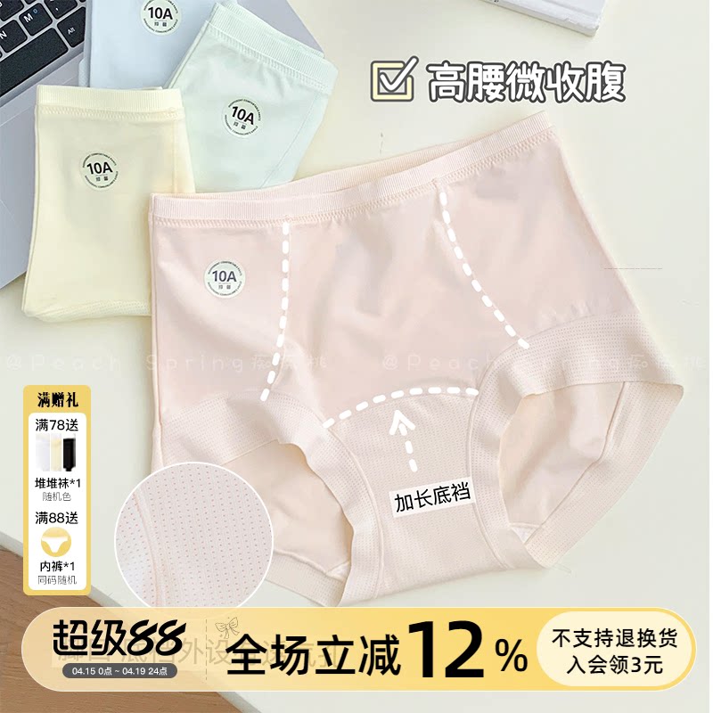 高能量女主~60支纯棉内裤女生加长裆10A类抑菌中高腰收腹裤女透气