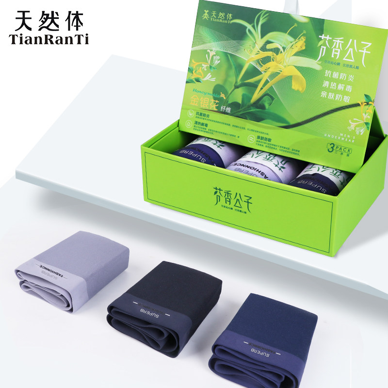 天然体男金银花抑菌内裤薄款透气自带香味莫代尔平角四角裤衩2164