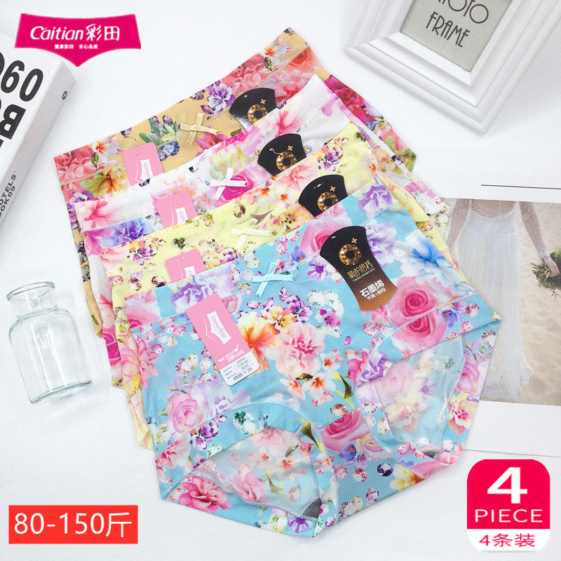 彩田女内裤冰丝30988高腰收腹30987中腰石墨烯裆大码速干印花底裤