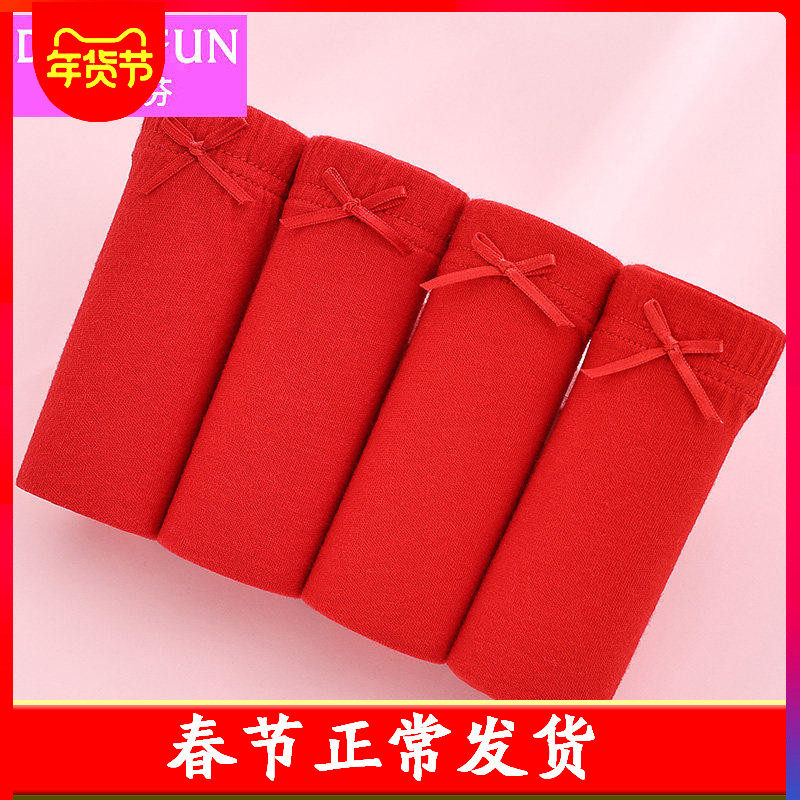 蝶安芬纯棉女内裤四条装本命年大红色高腰大码宽松裤头女士三角裤