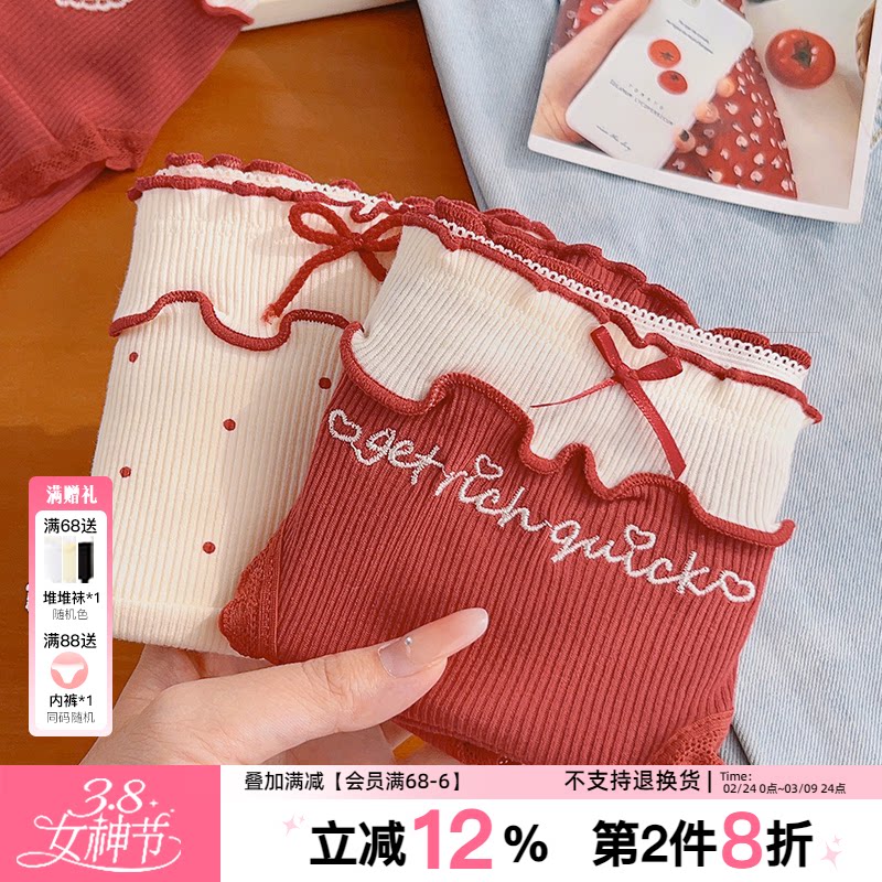「甜心锦鲤」好运红色内裤女生纯棉本命年新款10A类抗菌少女可爱
