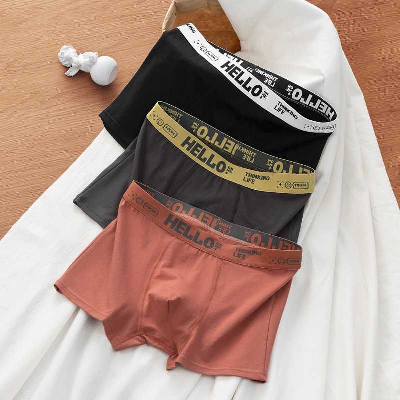 3条装男士内裤平角裤纯棉低腰性感舒适U凸简约纯色青年四角裤包邮