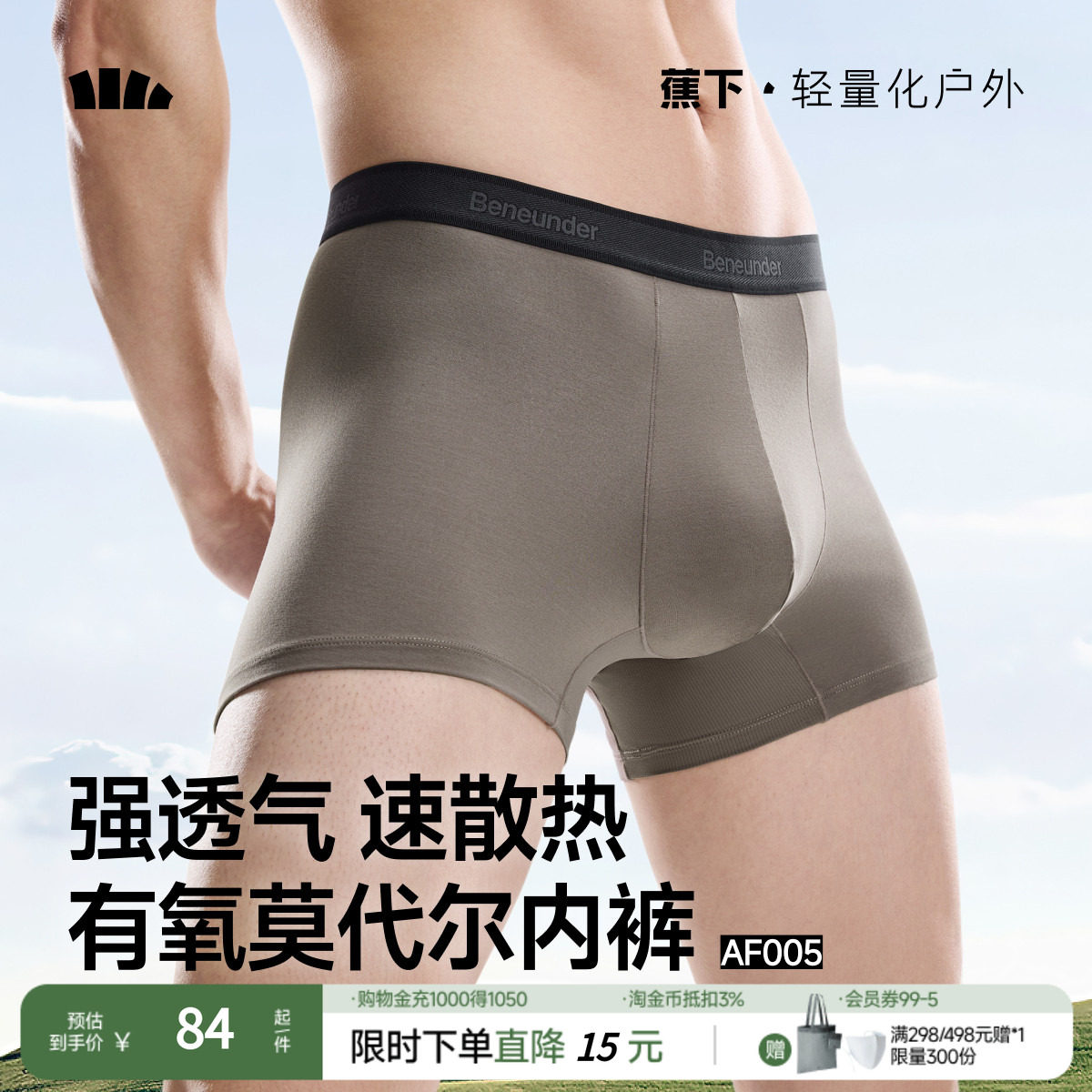 蕉下男士透气莫代尔内裤AF005三条装四季速干短裤打底裤平角内裤