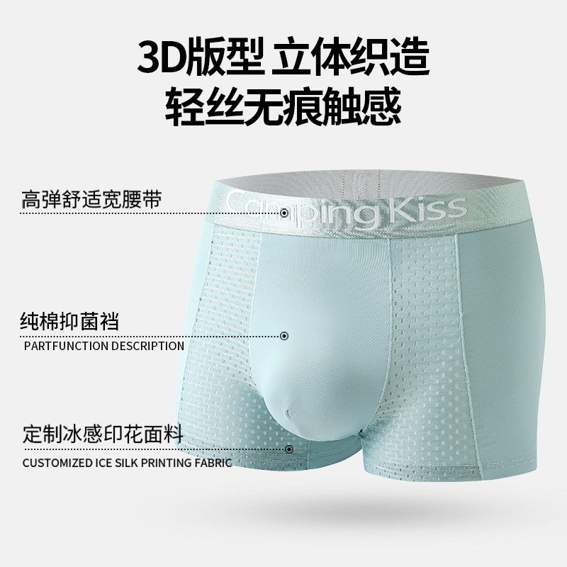 抗菌男士冰丝内裤生蚝物理按摩颗粒男士网孔透气四角内裤