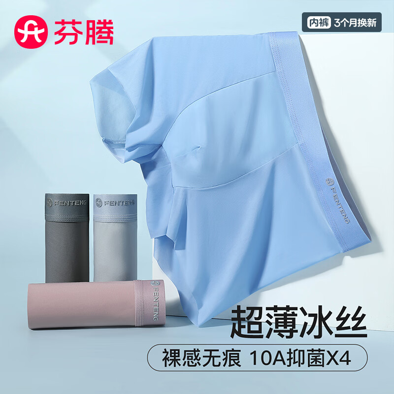 芬腾内裤男式内裤10A抑菌中腰简约平角内裤4条装 碳灰/中灰/藕粉/海蓝 4条 3XL