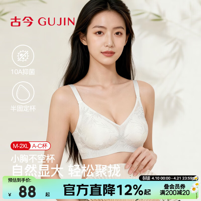 古今新款小胸聚拢透气无钢圈果冻软支撑新中式国风内衣女文胸罩送礼 胭脂粉【买文胸送配套内裤】 L (80ABC)