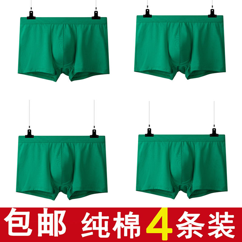 男士内裤纯棉2026新款绿色男款透气四角男式平角底裤衩男生短裤头