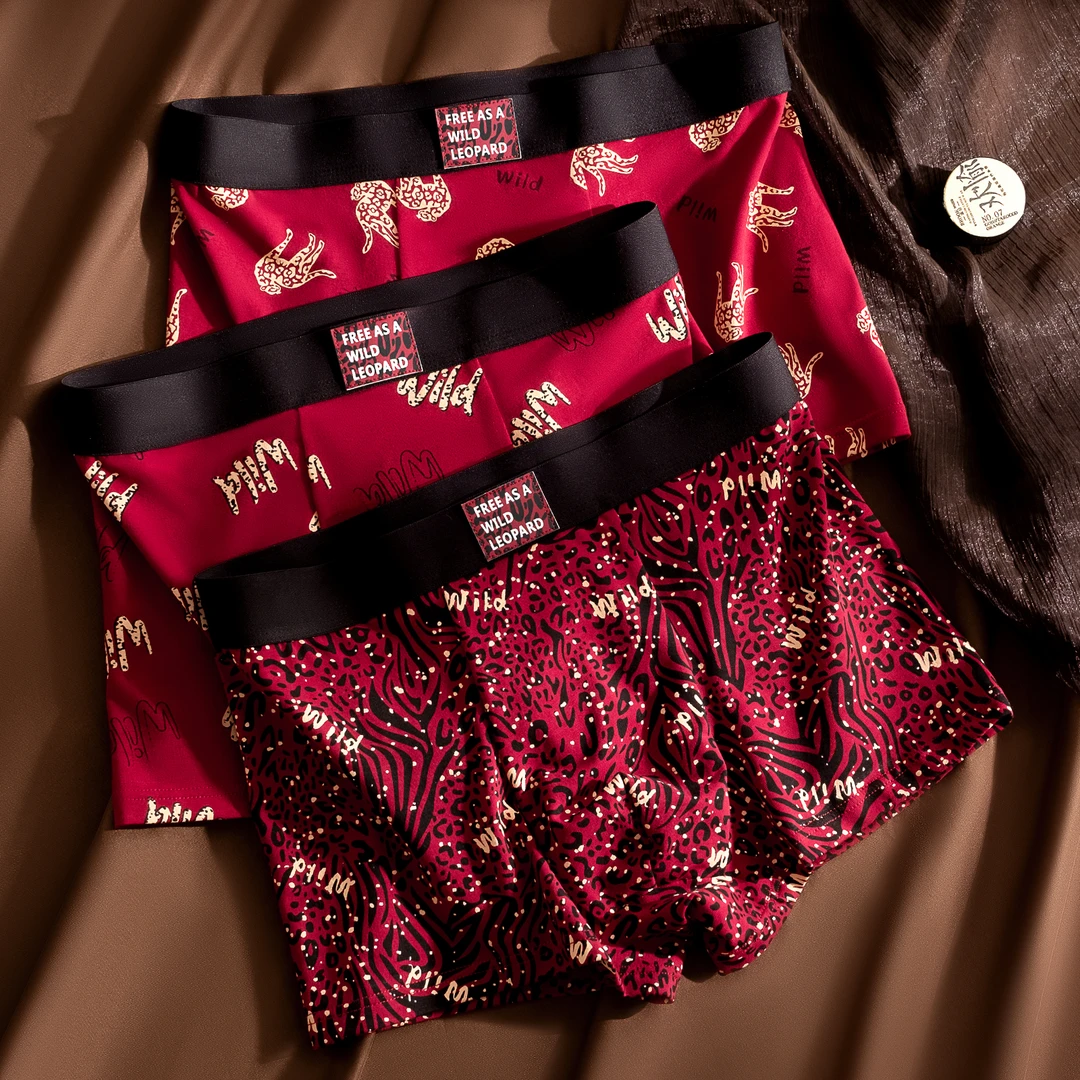 狂野红!本命年棉质新年马年男士内裤中腰豹纹性感送礼元旦圣诞节