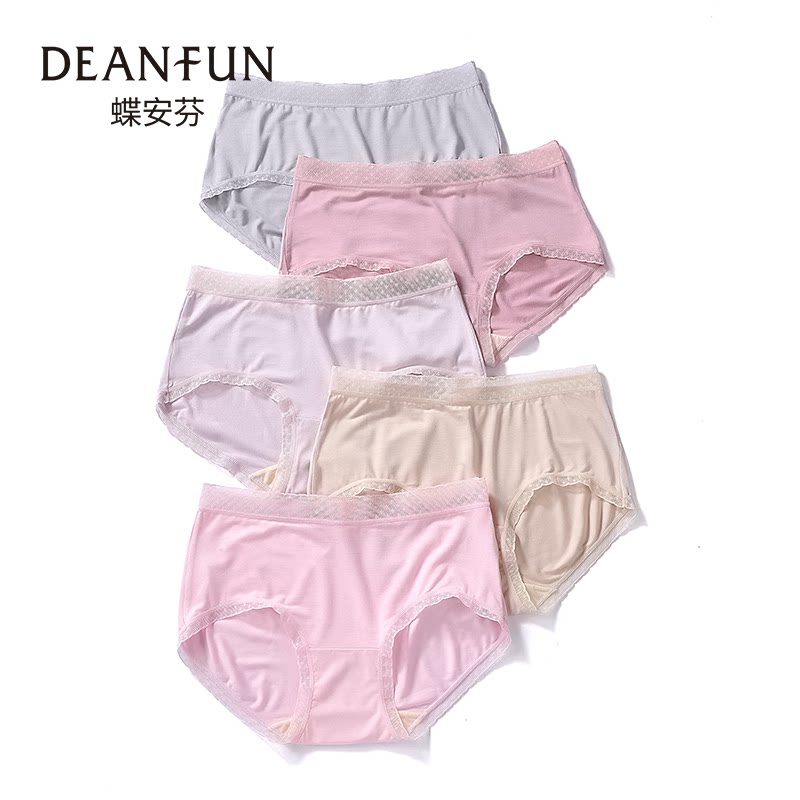 蝶安芬超细纤维小花边素色组合5条装女士中腰内裤