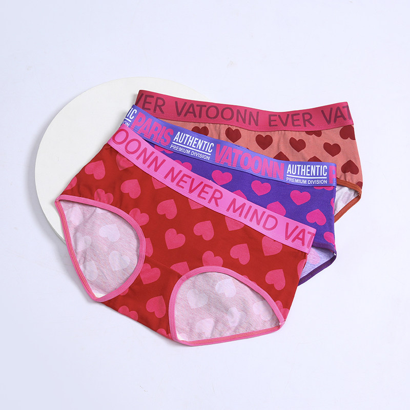 女士纯棉内裤中腰印花宽边三角透气抗菌裆舒适可爱卡通运动中性LE