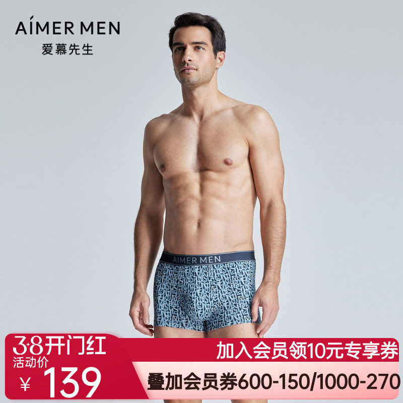 爱慕先生24SS莫代尔印花内裤男士印花中腰平角裤NS23K812