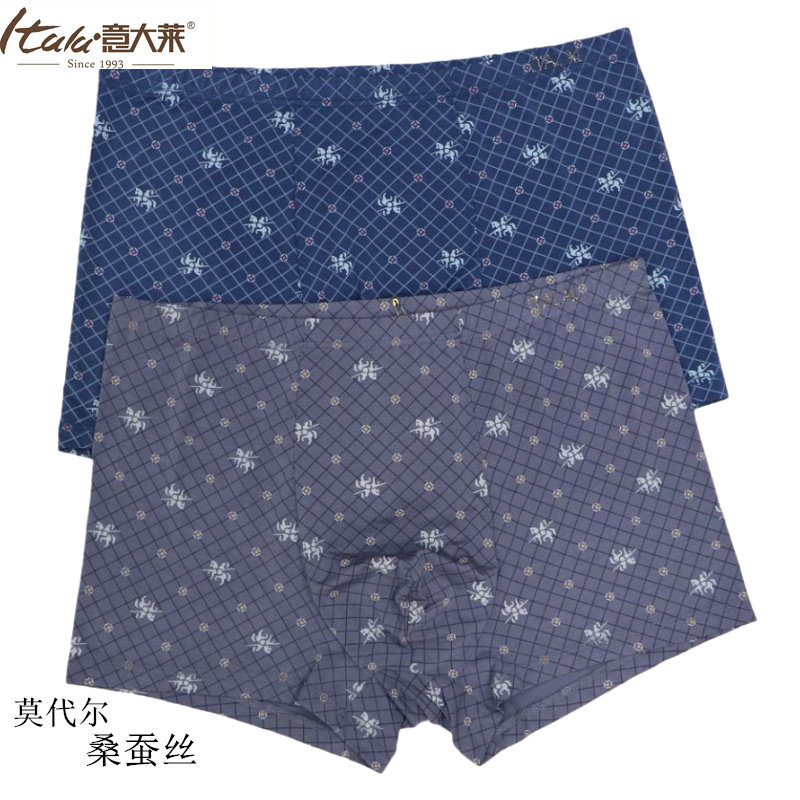 2条 新款意大莱莫代尔男士桑蚕丝内裤平角抗菌四角短裤头青年4683
