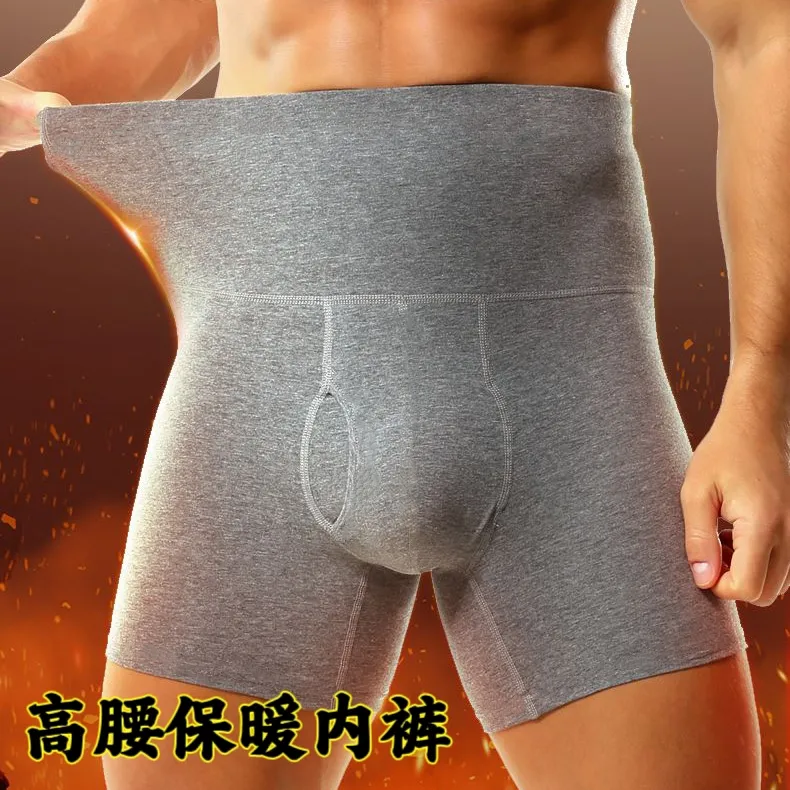 3件德绒男士内裤高腰双层护腰暖腹平角裤衩大码加长防磨腿四角裤