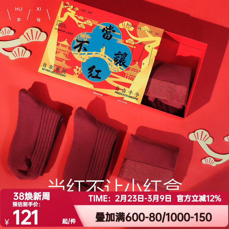 爱慕乎兮正品当红不让蛇年男士内裤袜子礼盒装本命年结婚囍红色
