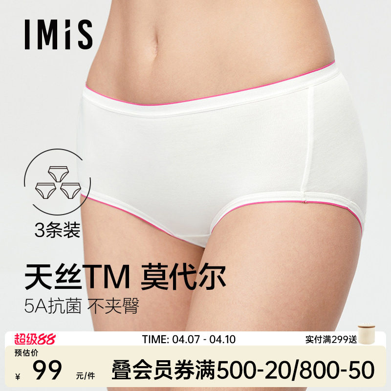 爱美丽3条装50S兰精莫代尔5A抗菌中腰女无痕内裤高弹不夹臀平角裤