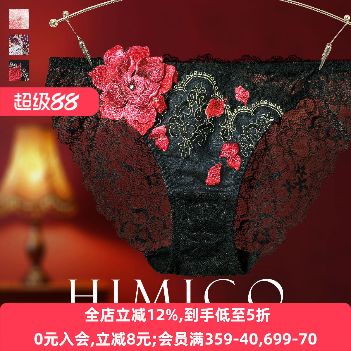 HIMICO内裤女薄款无痕日系透肤蕾丝重工刺绣性感低腰三角内裤033