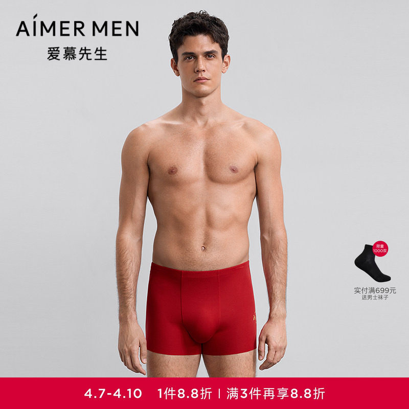 【日照金山】爱慕先生含高支莫代尔本命年红品男士平角内裤25春夏