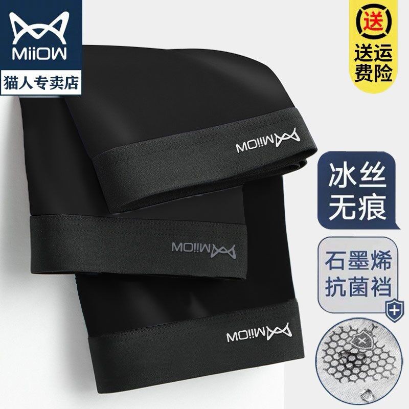 猫人纯棉男士内裤男冰丝中腰平角裤大码夏季透气薄款运动四角裤头