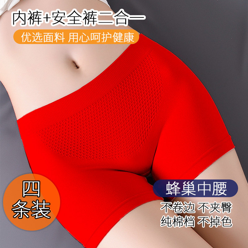 四条无痕本命红纯棉档中腰平角安全裤防走光收腹提臀内裤女生透气