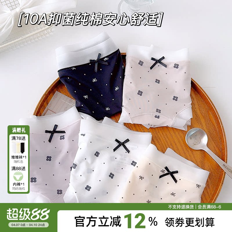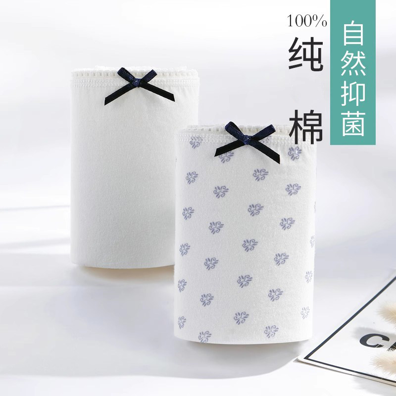 棉文化纯棉内裤女100%全棉新疆棉抗菌可爱蝴蝶结中腰平角裤透气