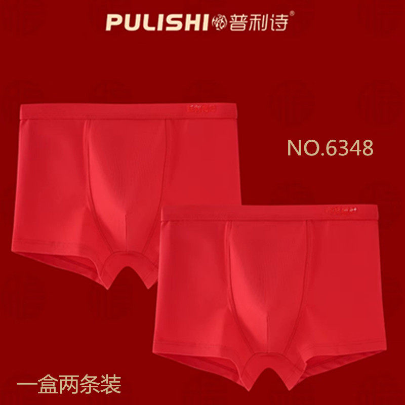 普利诗内裤男鸿运喜庆大红柔纱棉抗菌青年中腰舒适平角裤两条6348