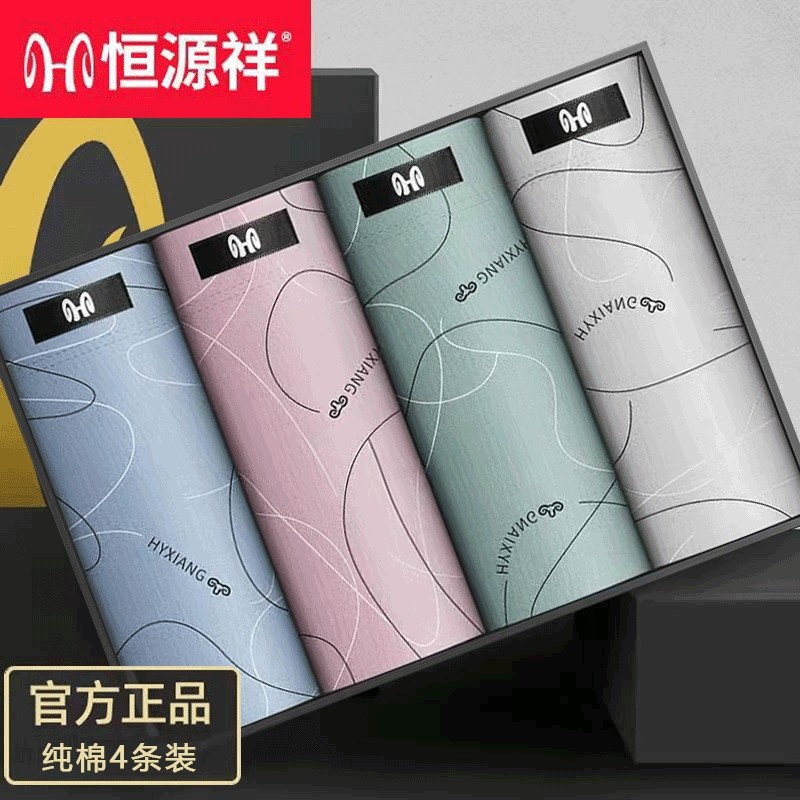恒源祥内裤男士平角裤纯棉抗菌透气全棉四角短裤衩宽松大码个性潮