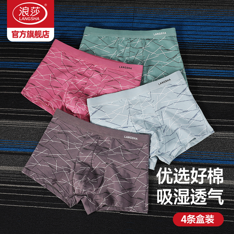 浪莎男士内裤男生纯棉2025春季四角男款薄款透气男运动平角短裤衩