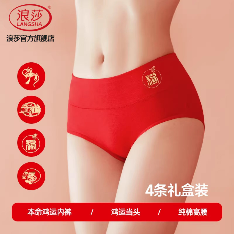 浪莎内裤女士本命年属马年2026红色结婚纯棉大码大红袜子短裤春夏