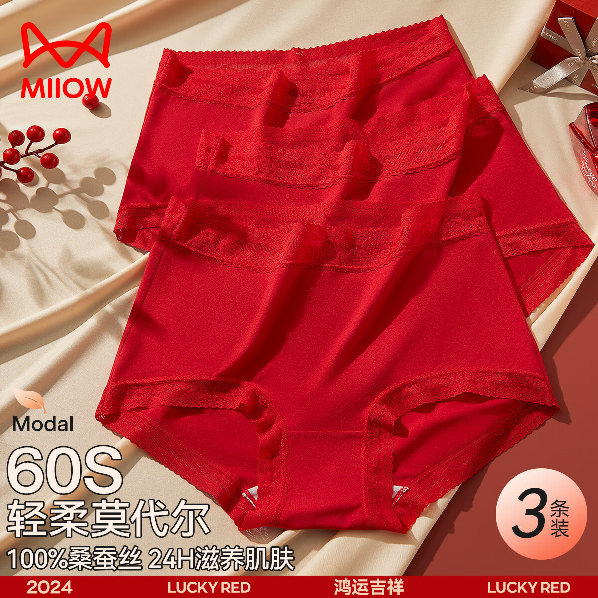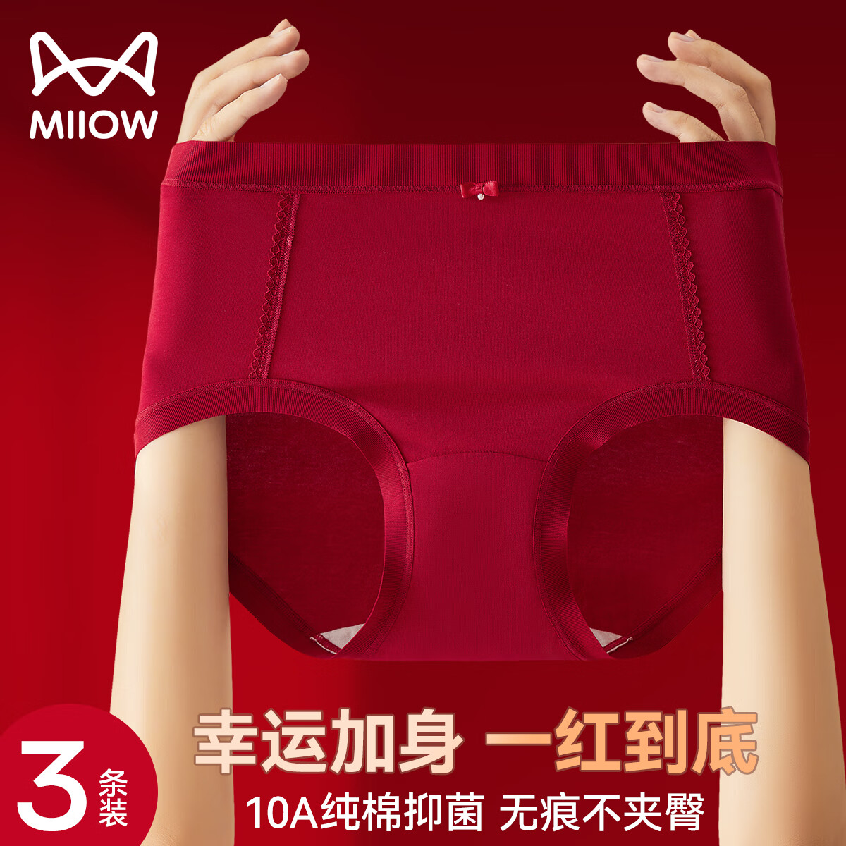 猫人【高腰收腹】女士内裤女本命年大红色纯棉抑菌三角裤礼盒装骐骥红