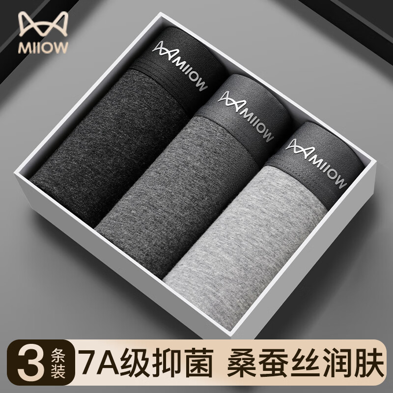 猫人纯棉内裤男【桑蚕丝7A抗菌裆】宽松大码平角裤无痕透气四角裤短裤