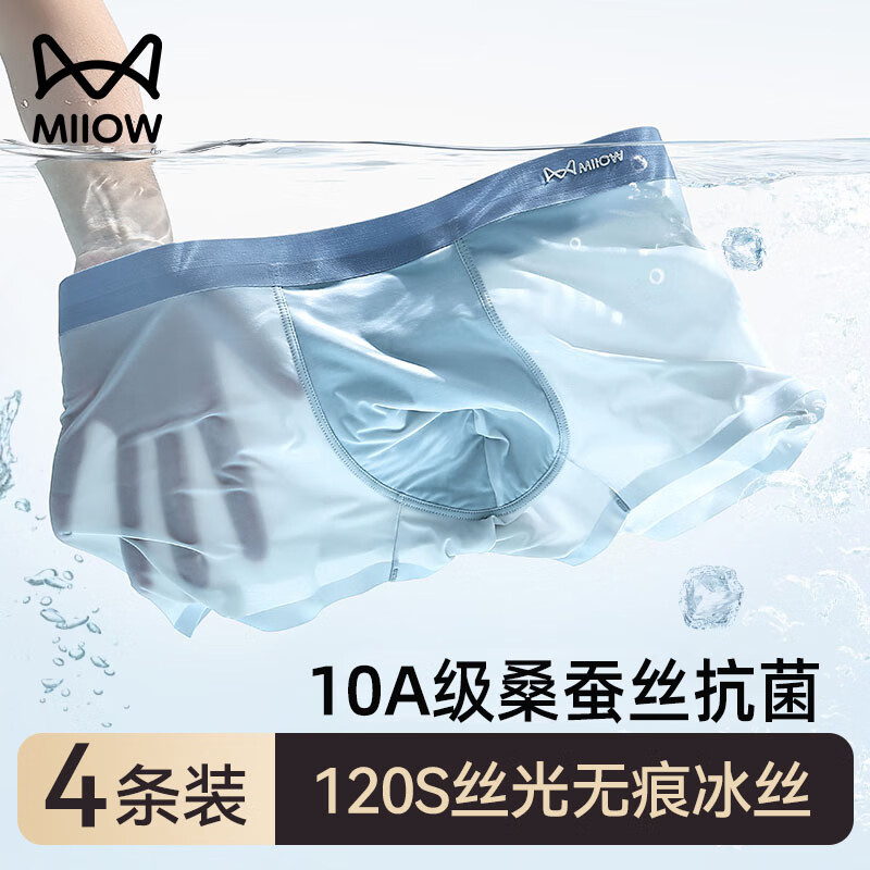 猫人男士冰丝内裤男【25年新款】10A抗菌春夏凉感无痕透气四角短裤