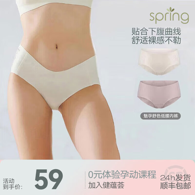 Spring Maternity喜临孕妇低腰内裤托腹产后收腹无痕高弹力塑身舒适亲肤内裤 低腰内裤-柔肤白+粉烟紫 F(均码)