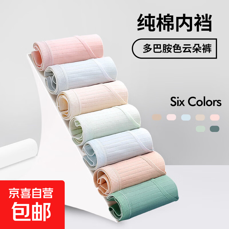 宜而爽纯棉女士内裤新款透气少女三角提臀式抗菌底裤头女生 2绿色+2蓝色+2粉色+1灰色 7条 XL (120-145斤)