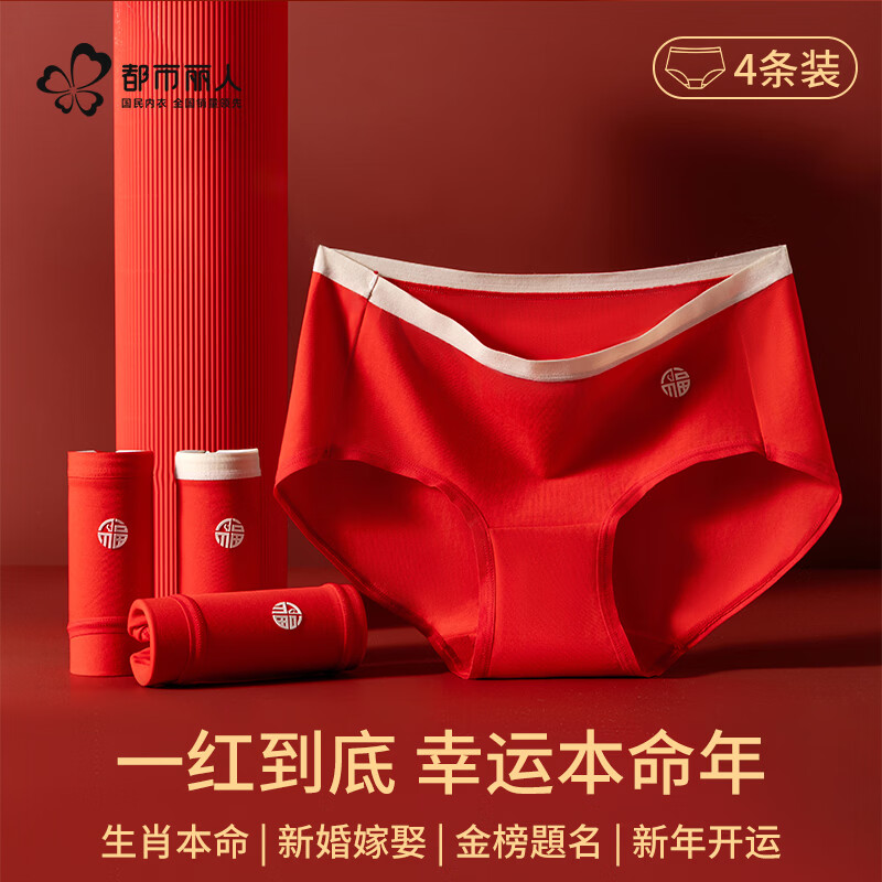都市丽人女士内裤鸿运红色本命年纯棉裆10A级抑菌100%全棉裆女生结婚喜庆 纯色+纯色+肤粉腰头撞色+肤粉腰头撞色 4条 L (165) 建议100-120斤