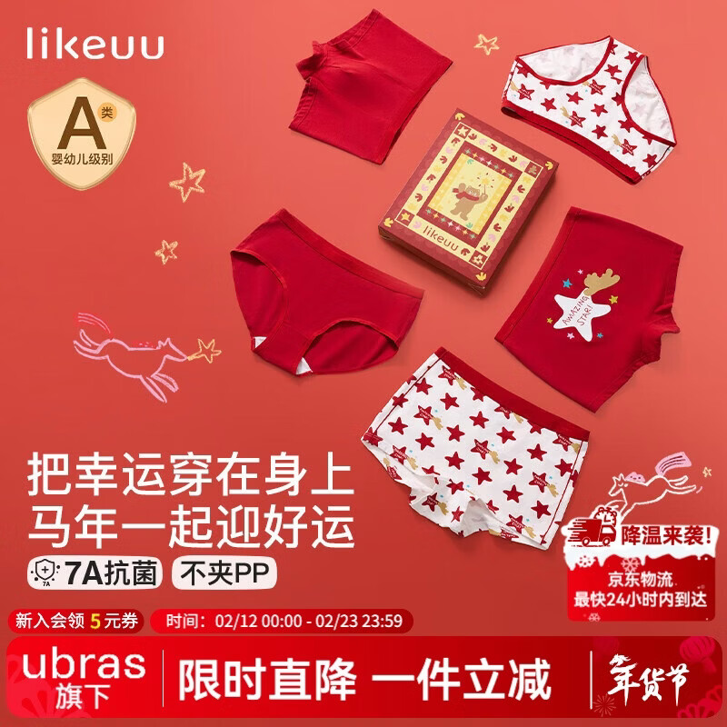 like uu儿童内裤礼盒纯棉男女童发育期内裤红色本命年25新年礼物