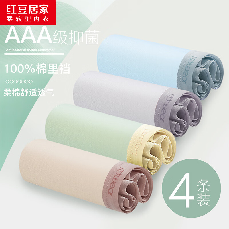红豆居家女士内裤A类7A级抑菌纯棉裆透气柔棉莫兰迪色三角短裤 HEK326组合二 M 165/72A