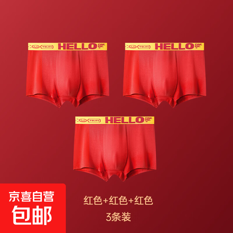 本命年男士内裤红色属马四角裤衩大红色结婚平角裤马年大红男内裤 【本命年大红裤】3条 4XL 建议160-180斤