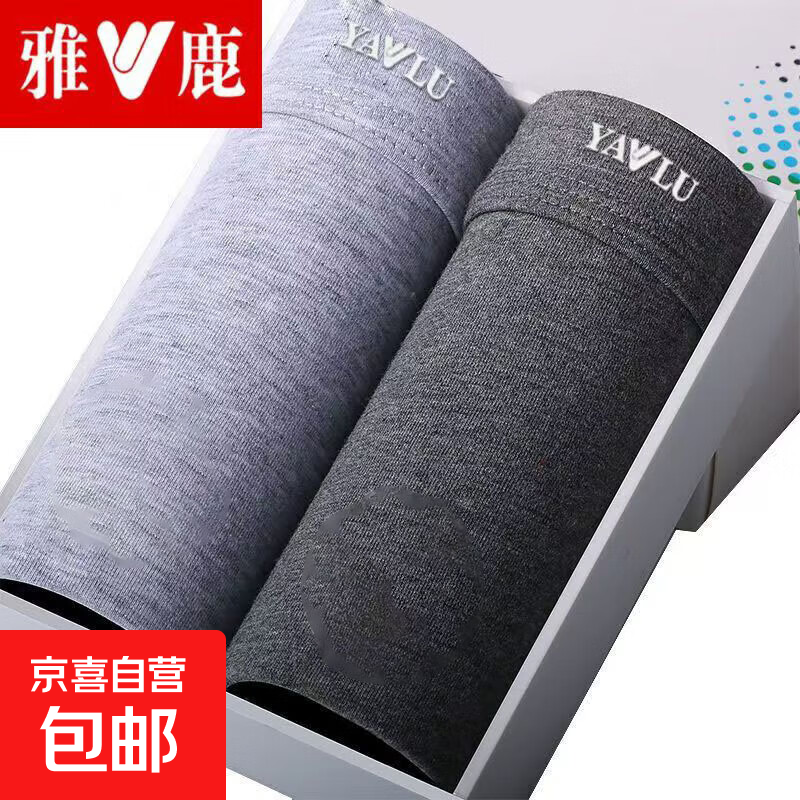 雅鹿纯棉男士内裤7A级抑菌舒适透气男生四角短裤头男式平角内裤 深灰+浅灰 袋装 2条 3XL (140~160斤)