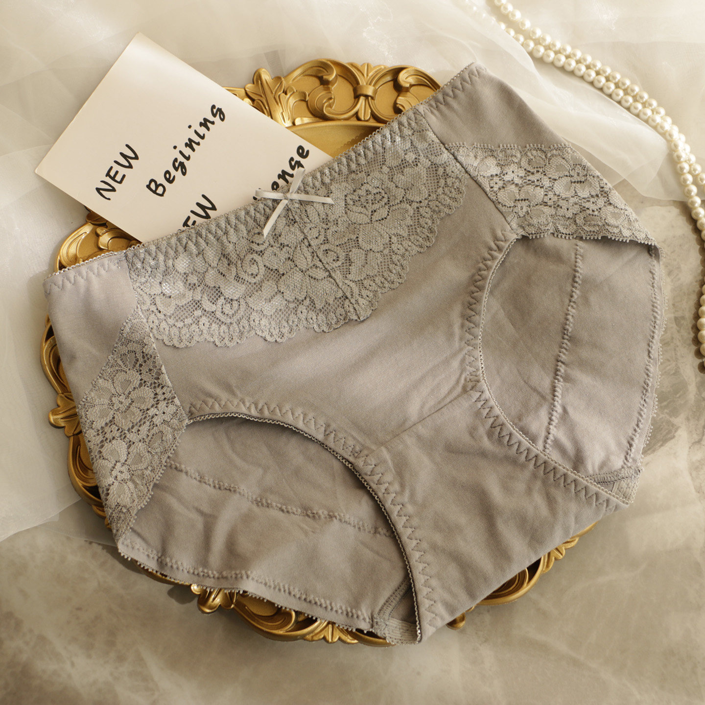 日系性感全蕾丝内裤女中高腰无痕包臀女士三角裤胖mm大码网纱透气
