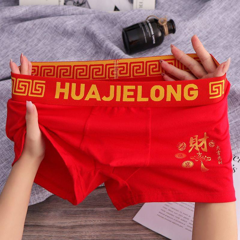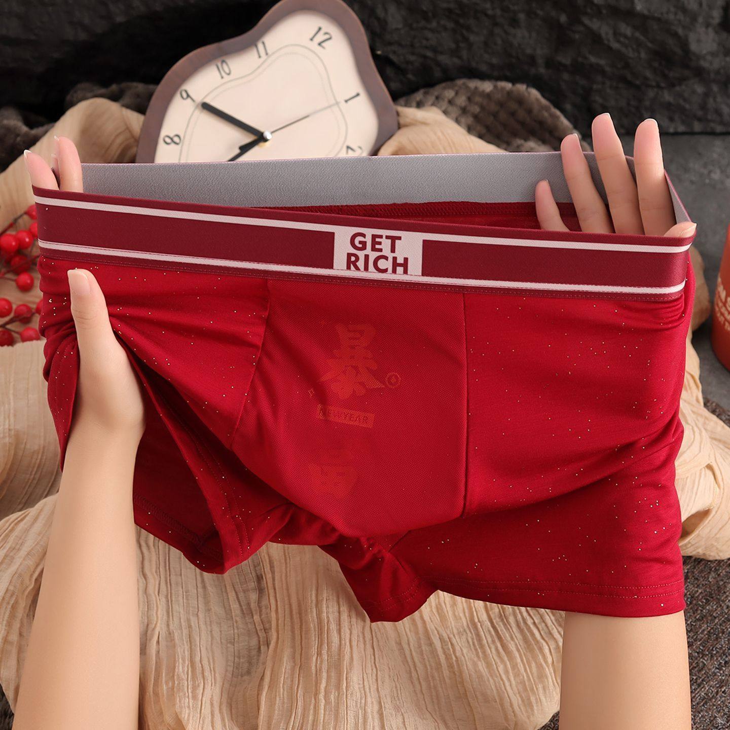 纯棉男士内裤本命年舒适透气抑菌鸿运暴富四角裤喜庆结婚平角裤男