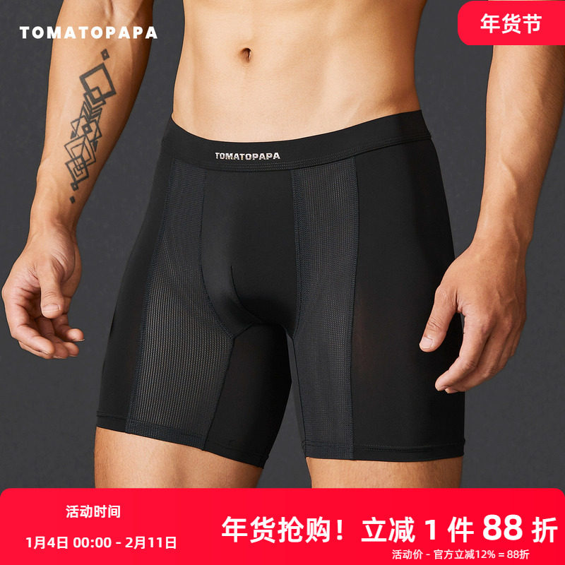 TOMATOPAPA男士内裤加长四角内裤冰丝无痕运动健身跑步训练平角裤