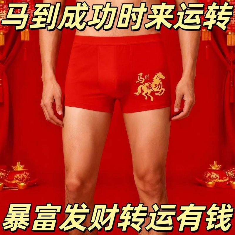 马年男士红内裤纯棉红色四角裤头红色套装结婚喜庆鸿运本命年属马