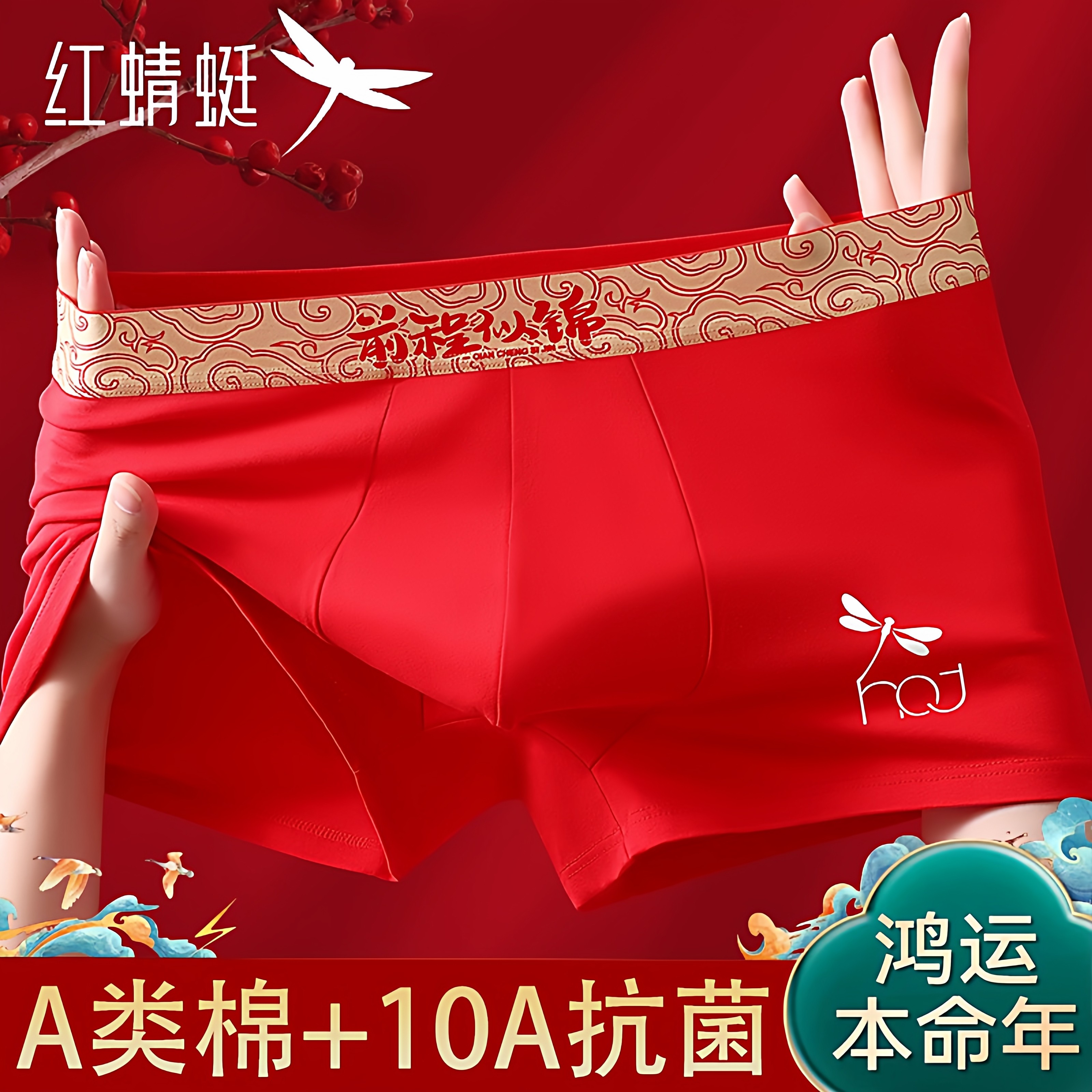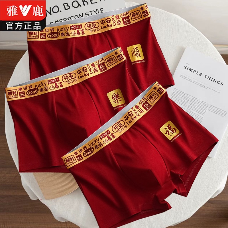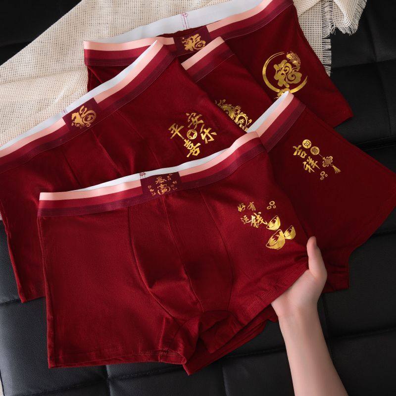 本命年内裤男士棉质平角底裤衩男生马年舒适透气红色鸿运四角裤头