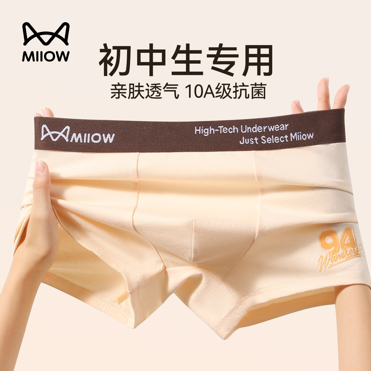 MiiOW/猫人男士内裤平角裤120S莫代尔无痕抑菌蚕丝透气四角短裤头