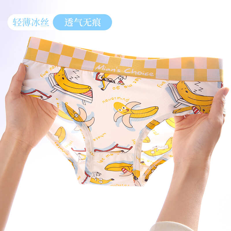 3条女士冰丝内裤夏三角透气薄无痕抗菌裆中腰宽松可爱卡通舒适